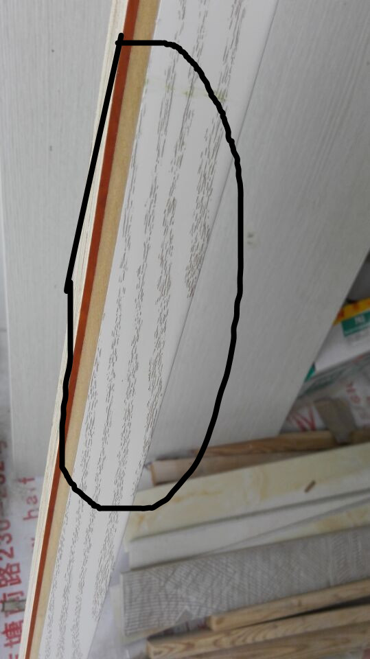 除了以上兩種辨別模壓門板的好壞,還有一種簡單的方法那就是通常做櫥柜 衣柜的時(shí)候 都會有 調(diào)整塊這個(gè)項(xiàng)目,通常安裝過程中多少都會需要切割尺寸(因?yàn)楝F(xiàn)場墻體尺寸都是不標(biāo)準(zhǔn)),如果是差的模壓門板的話,切割之后會出現(xiàn)這樣的現(xiàn)象。 見圖